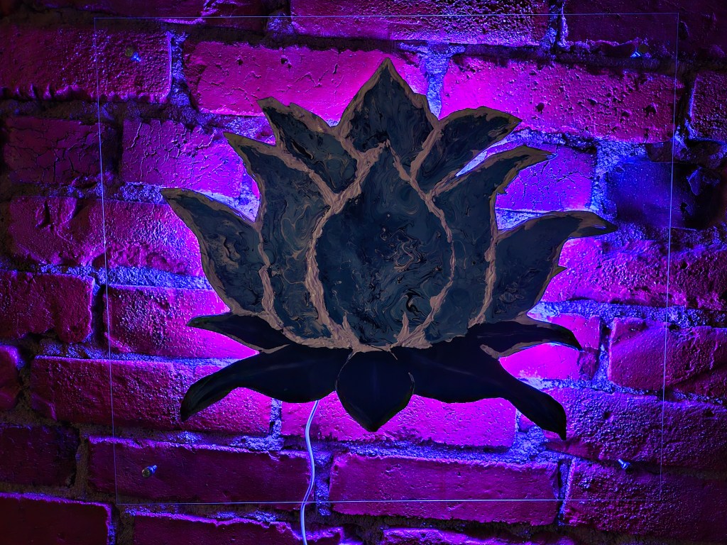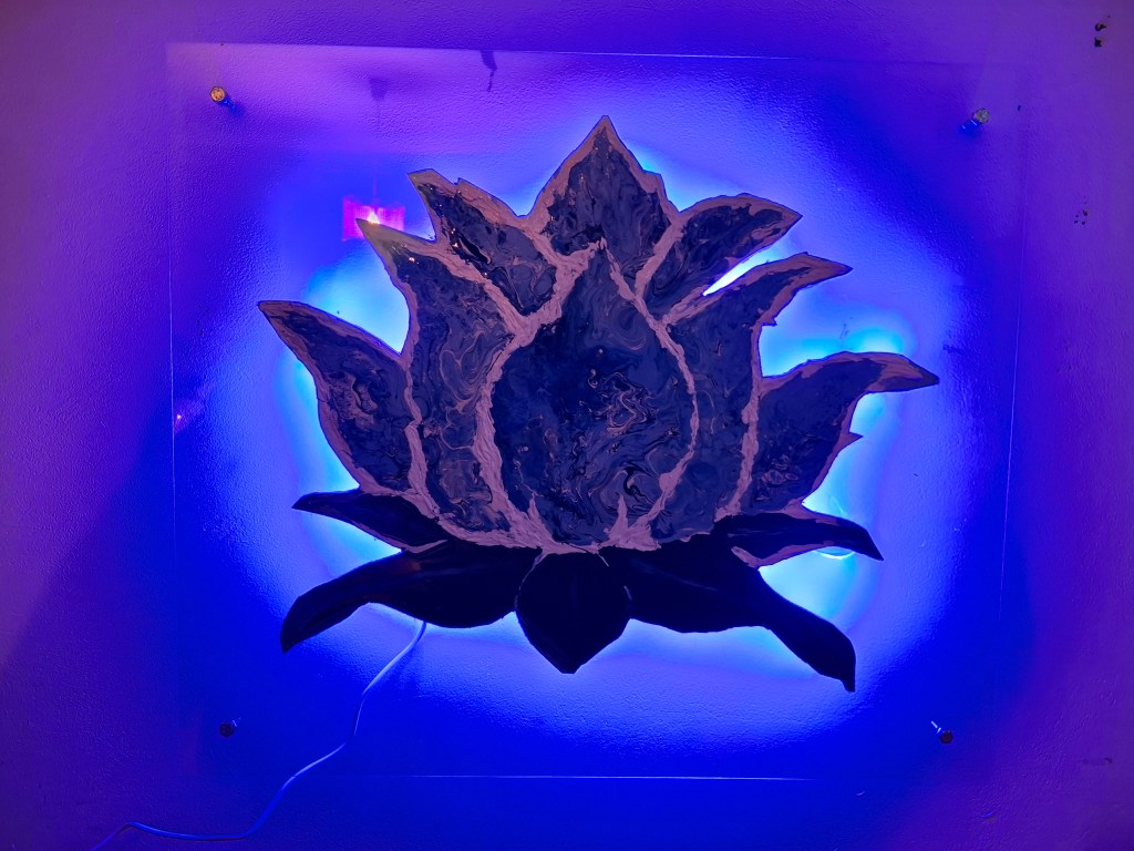 Alkyd painting combined with transparent frame and LED-lights, 60cm x 50cm