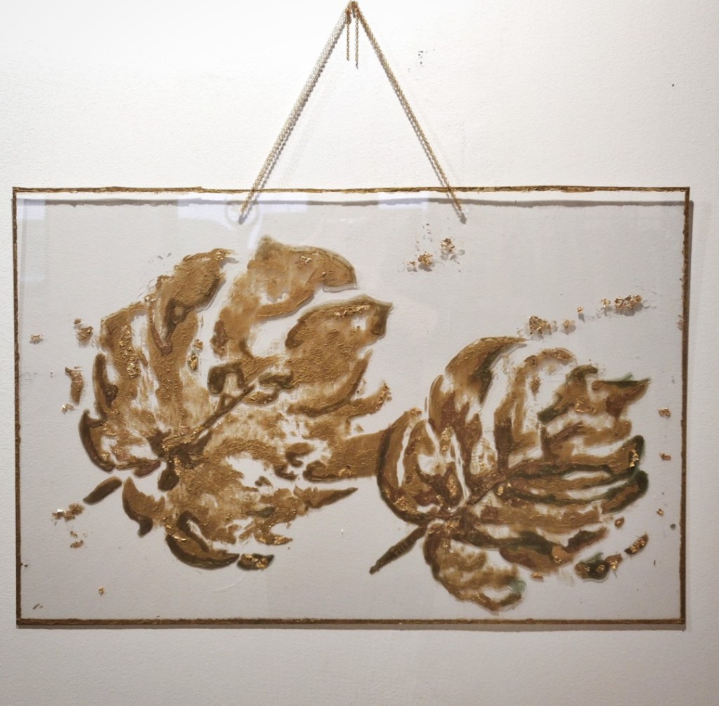 Acryl, alkyd and goldleaf on with transparent frame, 60cm x 40cm